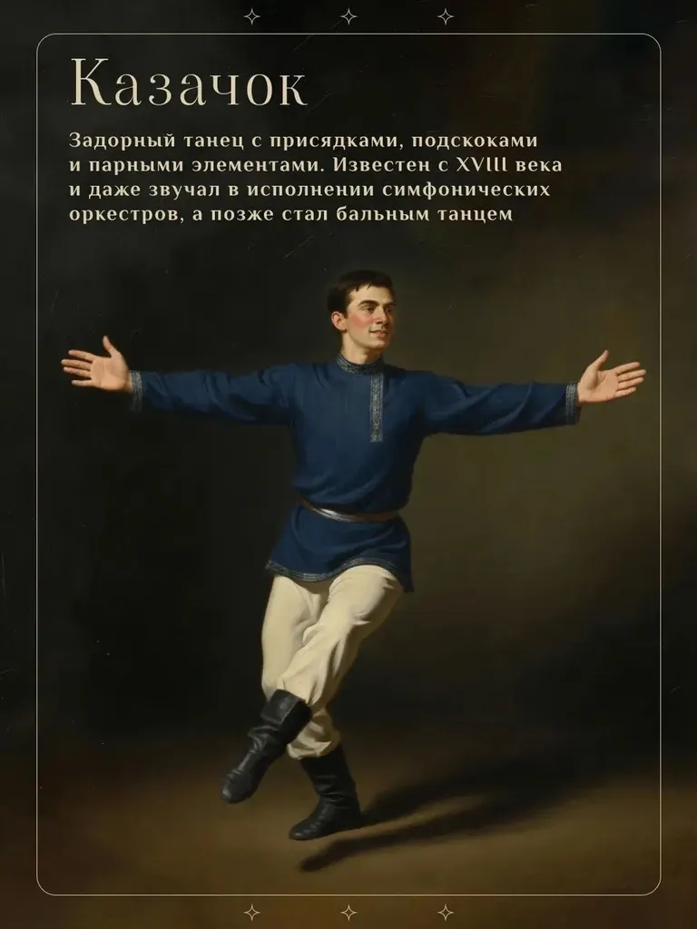 В карточках рассказали о ярких русских танцах. Поделитесь в комментариях, каким из них вы хотели бы научиться